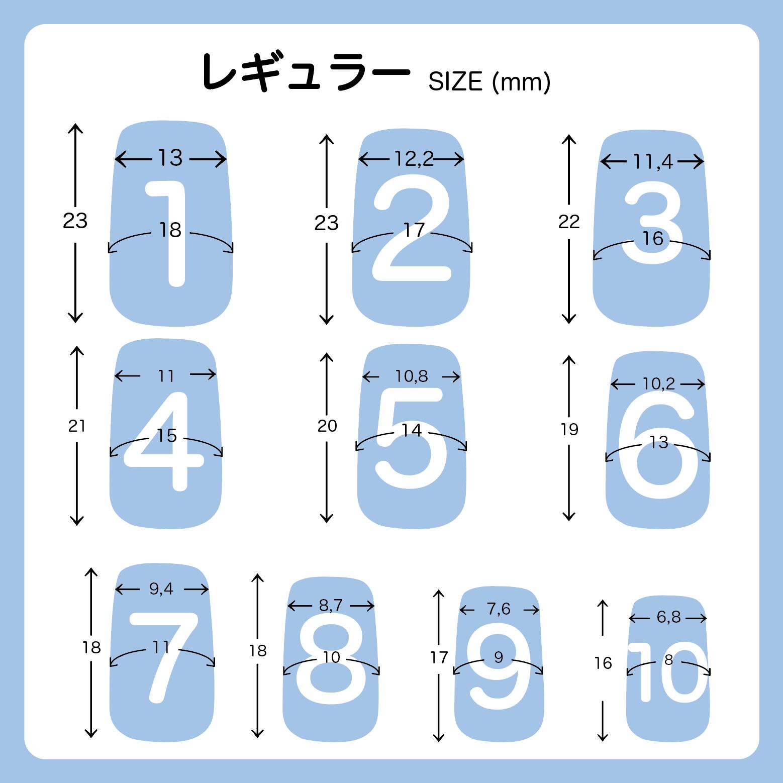 ②ご自身の爪の横幅を測り、サイズ番号をご決定ください。